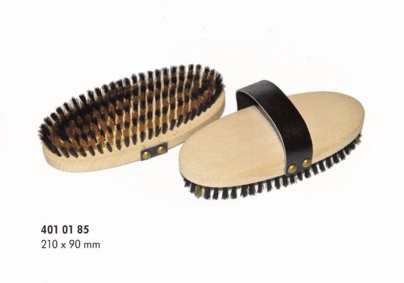 KELLER Body Brush 401 01 85 je kvalitní oválný kartáč na koně určený pro čištění těla Vašeho koně. Tento kartáč je vyroben z bukového dřeva a velmi kvalitních přírodních rostlinných vláken, která jsou střídavě žluté a černé.