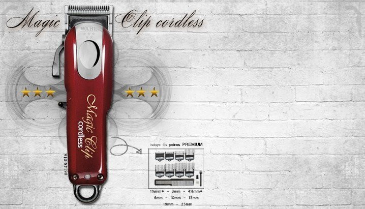 "Bezkabelová verze jednoho z nejoblíbenějších síťových strojků - Wahl Magic Clip. Kvalitní a spolehlivý, vhodný do náročného provozu s možností střihu od 0,8 mm až do 2,5 mm bez použití nástavce. Oproti kabelové verzi je o polovinu lehčí. Pro dlouhou životnost nezapomeňte dostatečně olejovat hlavici. V případě potřeby je možné tuto hlavici profesionálně přebrousit. Jestli se vám hlavice při delším provozu zahřívá, je vhodné použít speciální zchlazovací sprej."