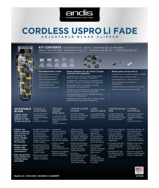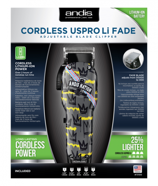 Americký střihací strojek na vlasy Andis Cordless UsPro Li Fade Andis Nation Graffiti je ideální pro profesionální střih vlasů a fady.