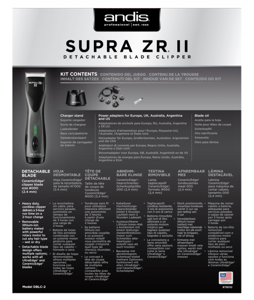 Supra ZR II je nová vylepšená verze staršího vrcholového modelu ZR od americké firmy ANDIS. Ideální do náročných provozů a střih hustých vlasů.