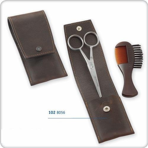 Souprava na úpravu vousů DOVO Solingen 1028 056 R SAT. je excelentní pánská souprava, která je určená pro úpravu vousů a knírů. Souprava obsahuje hnědé kožené pouzdro z hovězí kůže, které je vyrobené z kvalitních materiálů a chrání nástroje před poškozením.