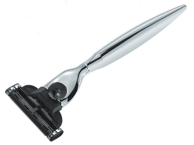Holicí strojek MERKUR Solingen 3003 000 s integrovanými břity je elegantní pánský strojek, který umožňuje snadné a pohodlné holení díky systému MACH 3 s náhradními břity. Strojek je vyroben z kovu s lesklým povrchem a má štíhlé, mírně vypouklé držadlo s adaptérem na břity MACH 3. Holicí strojek je vyráběn originální značkou MERKUR Solingen v Solingenu v Německu.