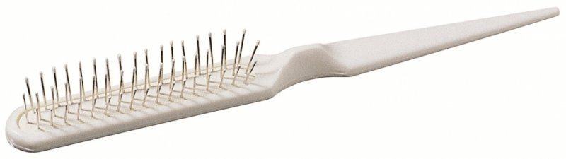 Kvalitní tupírovací kartáč na vlasy od značky KELLER. Plochý plastový kartáč s ergonomickým držadlem, které je zakončené špičkou pro snadné oddělení pramenů vlasů. Kovové hroty jsou zakončené plastovými kuličkami, což zajišťuje šetrné a pohodlné rozčesávání vlasů.