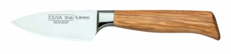 Tento kovaný kuchařský nůž řady OLIVA Line od BURGVOGEL Solingen je určený pro dranžírování a je exkluzivní, profesionální a špičkové kvality. Jeho čepel je vyrobena z jednoho kusu nejkvalitnější chrom-molybden-vanadové oceli X50CrMoV15 a má délku 10 cm. Čepel je speciálně kalena a popouštěna v olejové lázni pro maximální korozivzdornost. Ručně je zabrušena pro velmi ostré ostří s dlouhou trvanlivostí.