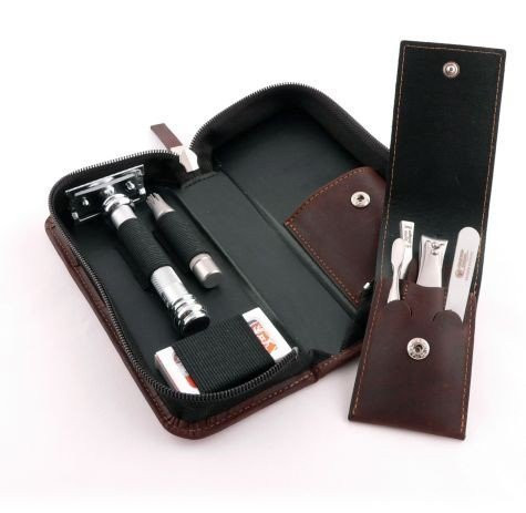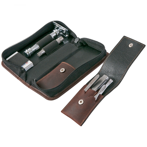 Souprava obsahuje holicí strojek MERKUR 38 001, který je známý svou precizností a pohodlným držením, a 10 ks žiletek MERKUR Solingen pro dlouhodobé použití. Mechanický kovový zastřihávač chloupků DOVO Klipette je ideální pro rychlé a bezpečné zastřihování chloupků v nose či uších.