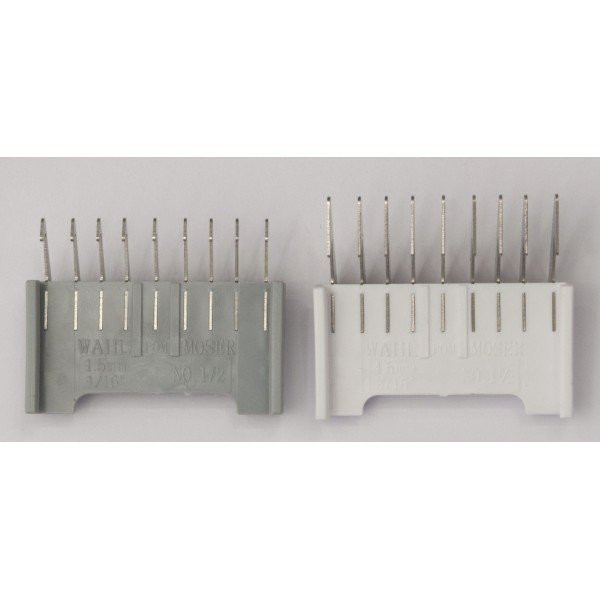 Set obsahuje hřebeny v velikosti 1,5 mm a 4,5 mm, což zajišťuje širokou škálu možností pro úpravu vlasů a vousů. Hřebeny jsou také odlišené barevně, což umožňuje snadnou identifikaci velikosti a usnadňuje výběr správného hřebene pro danou úpravu.