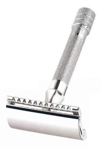Tento celokovový strojek je chromovaný a určený pro klasické žiletky. Jeho šroubovací držadlo zajišťuje pohodlné a pevné držení při holení. Plná lišta je ideální pro každodenní holení a dokonale oholí vaše vousy nebo bradu.